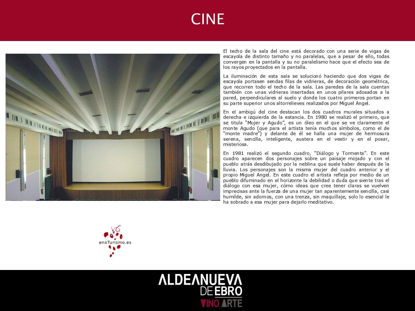 Que no os engañen los apenas 2.800 habitantes con los que cuenta Aldeanueva de Ebro. A nivel de espectáculos, esta localidad está más viva que cualquier otra, y la Sala Entreviñas es una buena prueba de ello. Conciertos, audiciones, obras de teatros, galas, exposiciones e incluso catas, todo eso y más es lo que esta sala ofrece a los aldeanos y a todo aquel que quiera acercarse a comprobarlo.